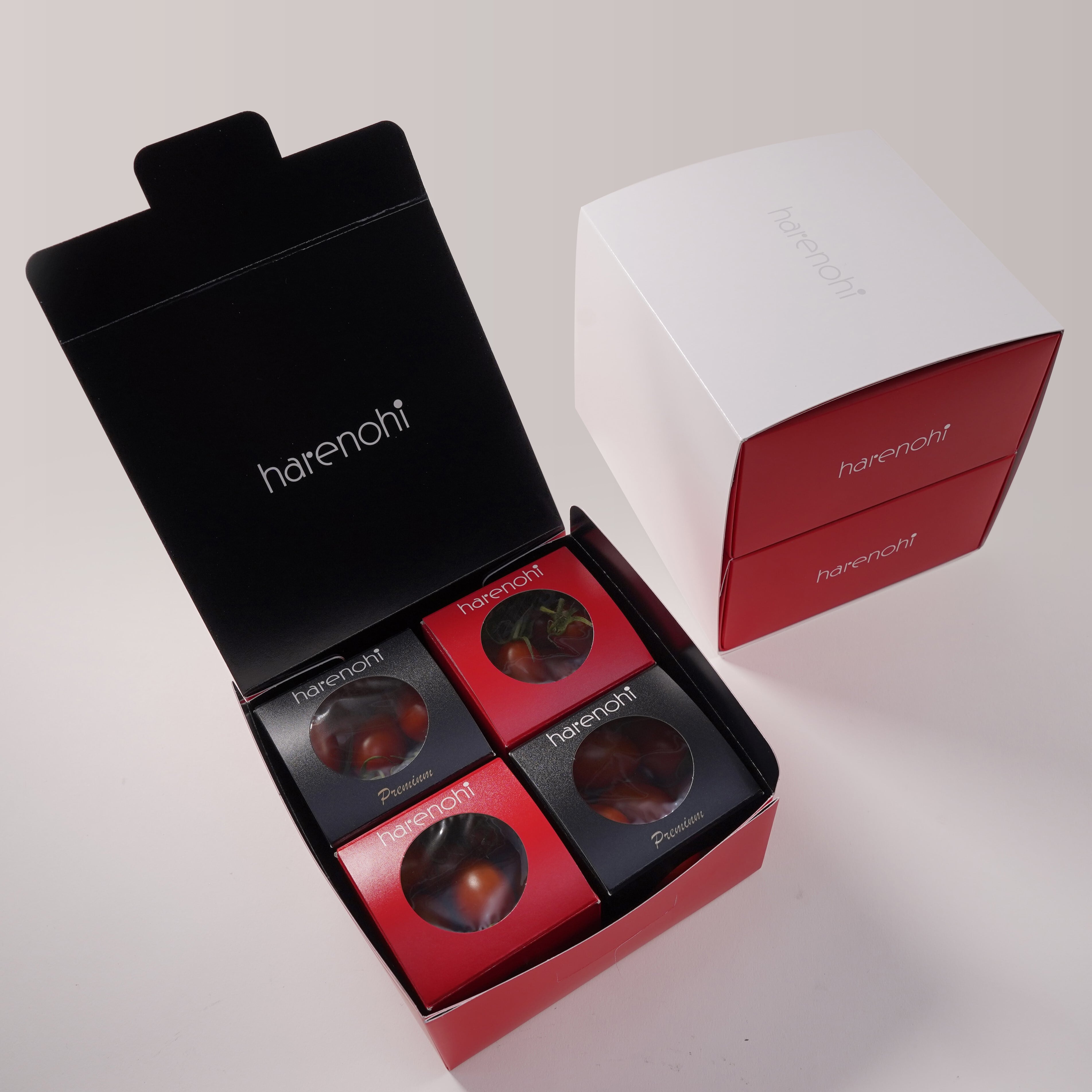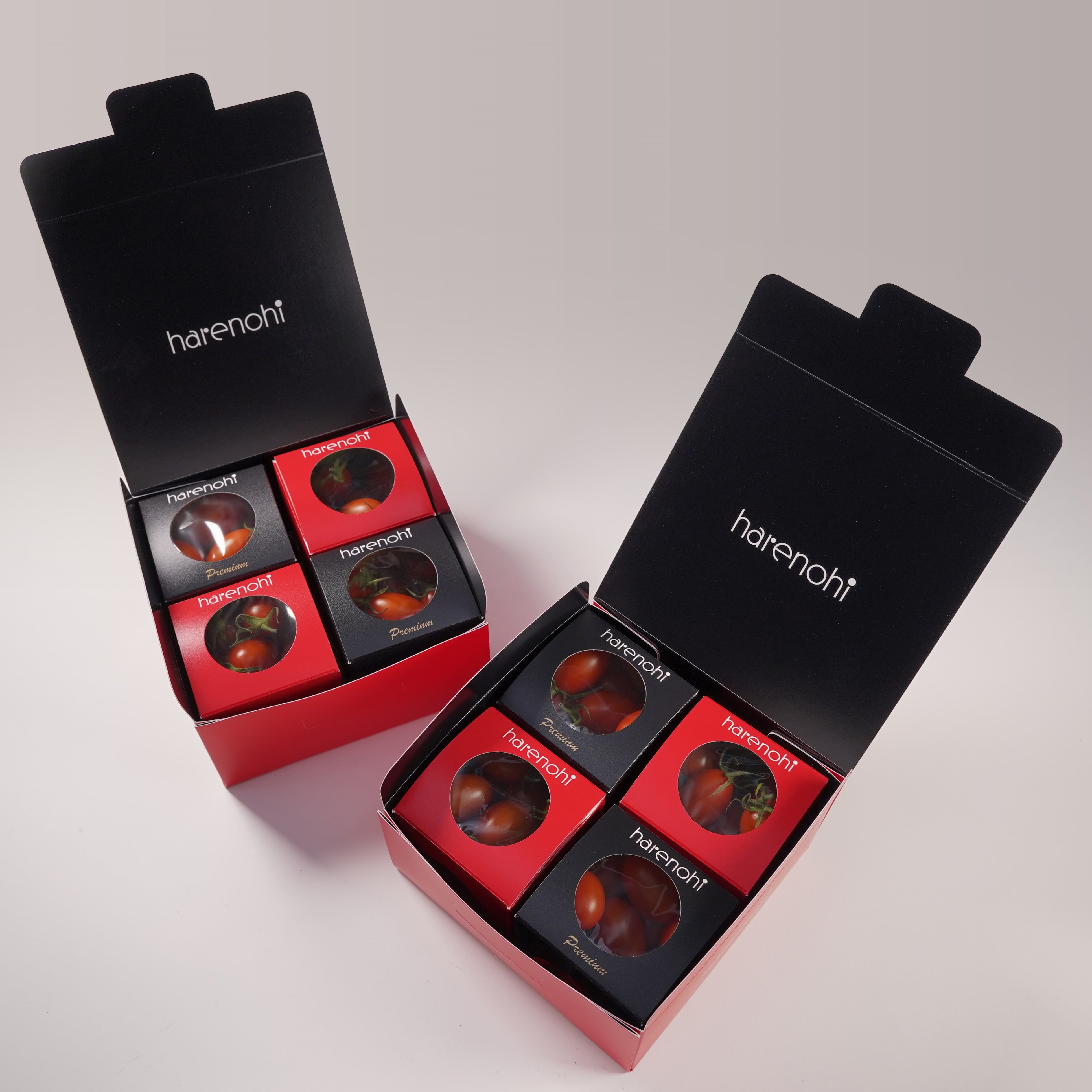 「ハレノヒトマト」と「プレミアム」の食べ比べセットが2段になった新商品。